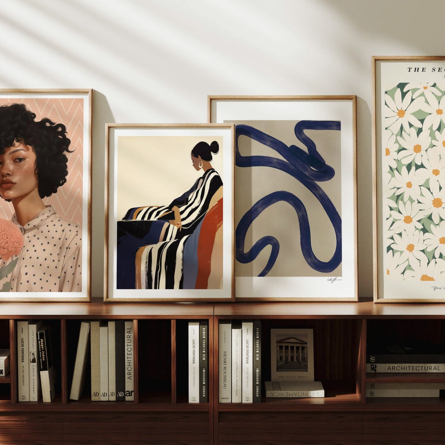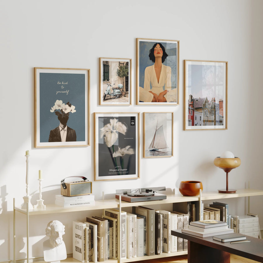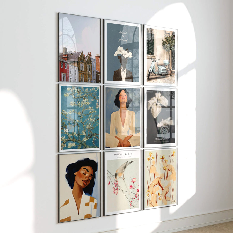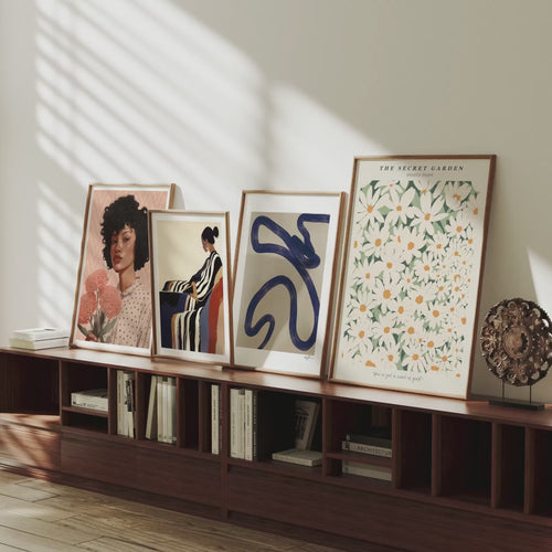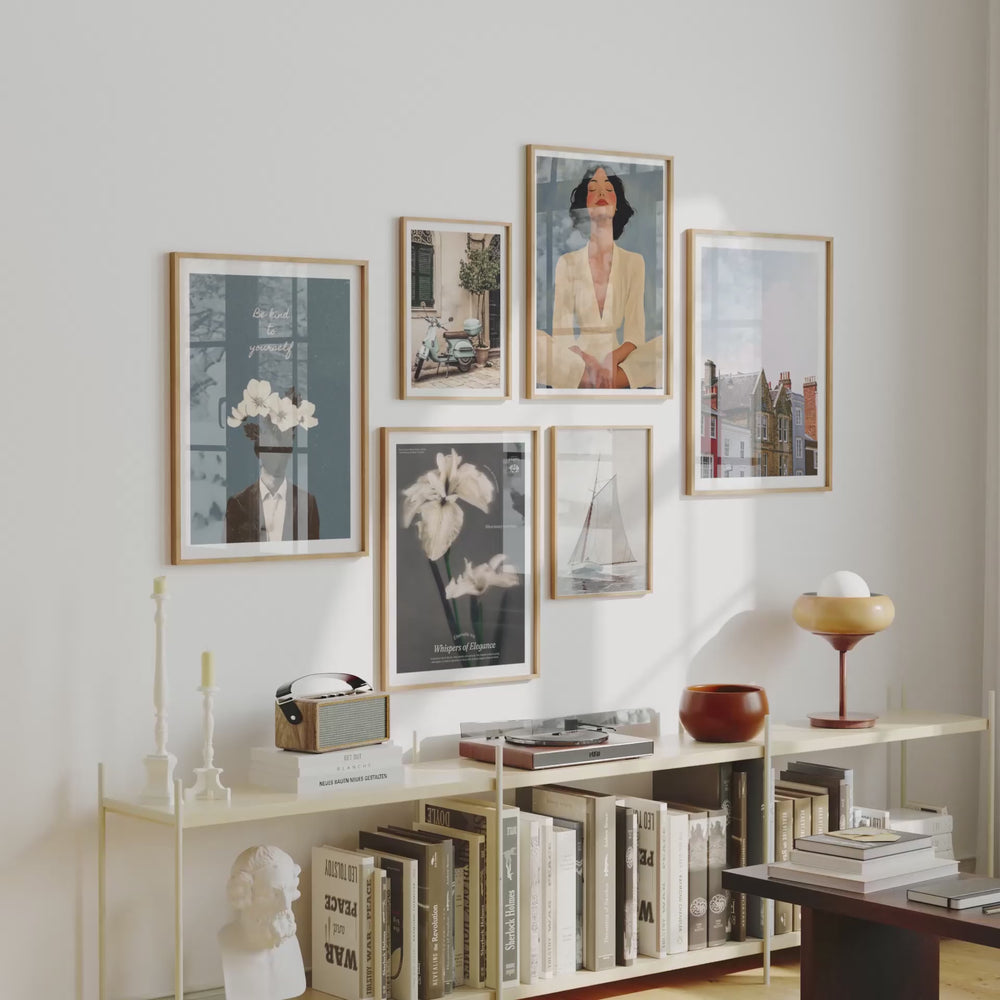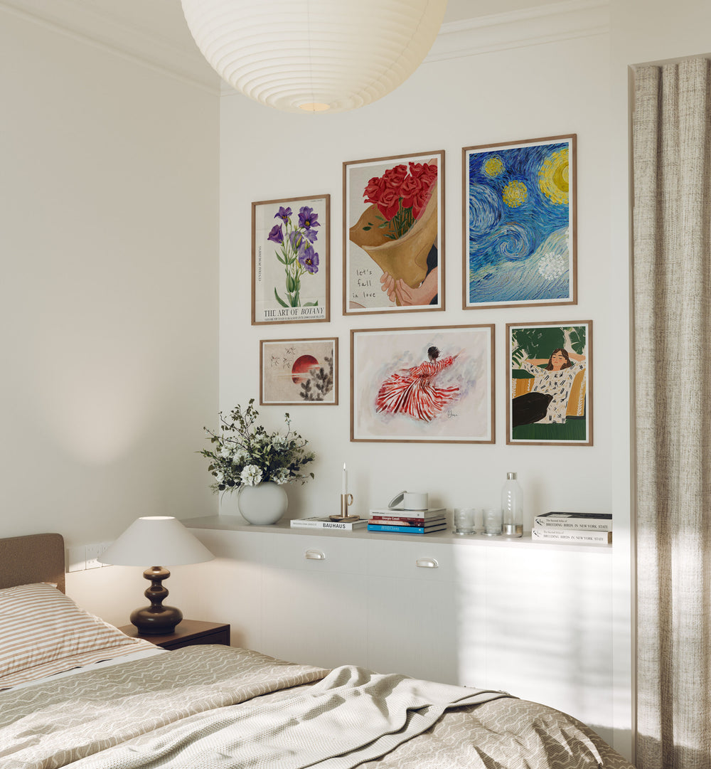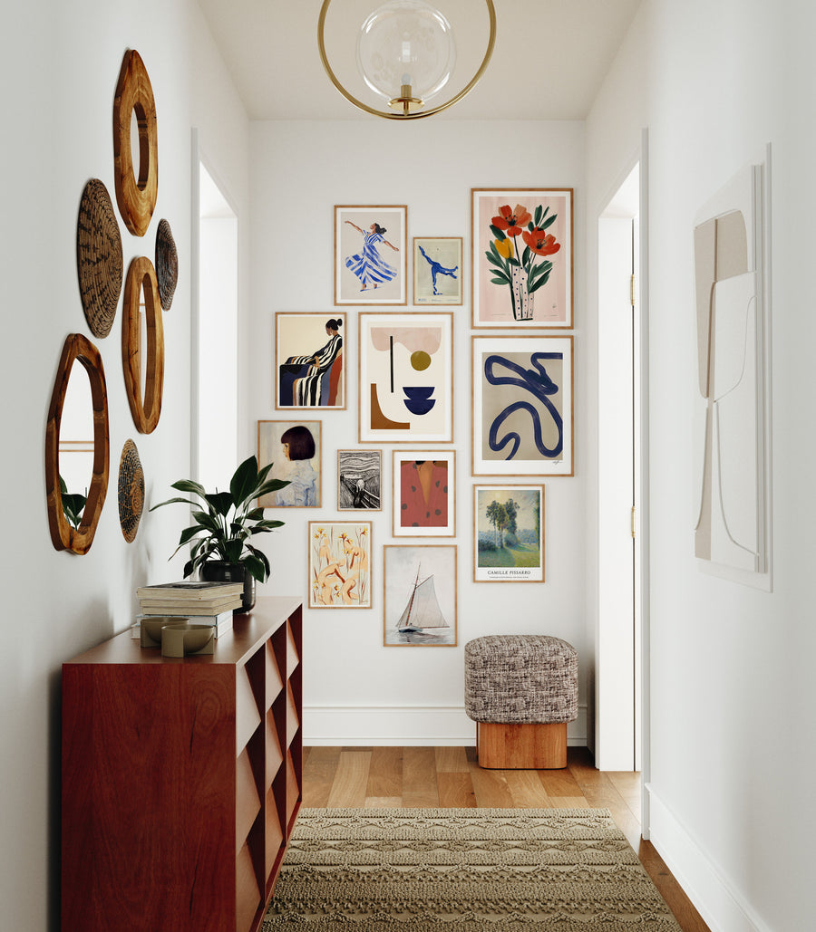 4.Aesthetic, neutral settings enhanced by soft light for standout artwork.