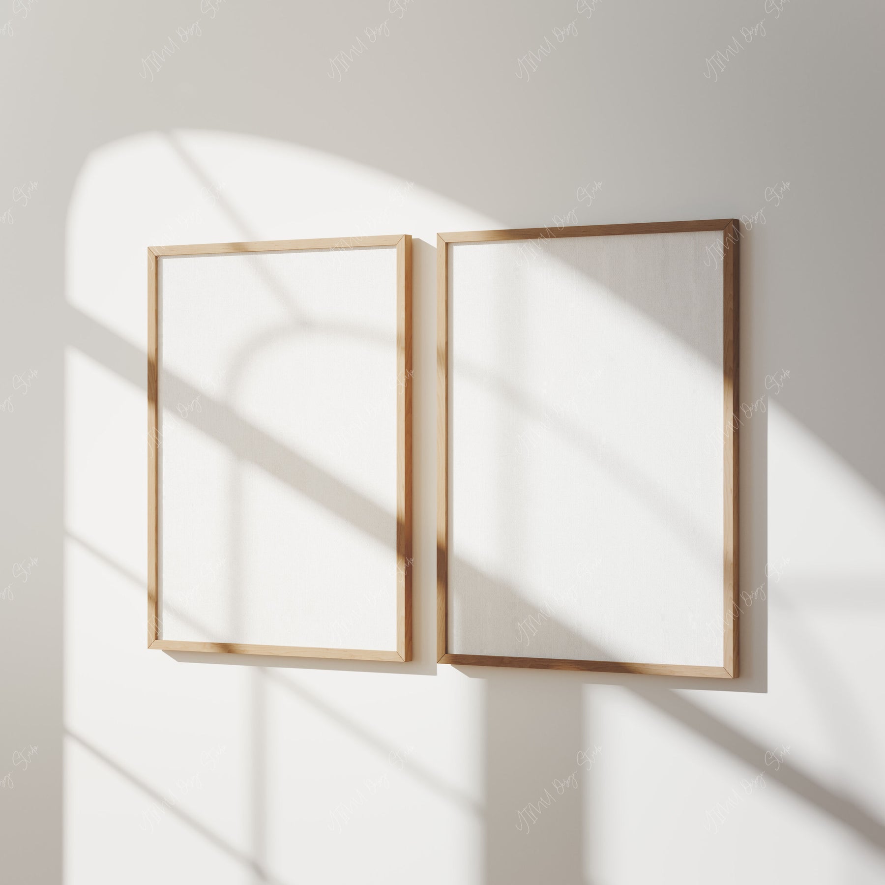 2 Wood Frame Mockup with Reflection,Minimalist 3x4 Wall Art Frame Mock-Up