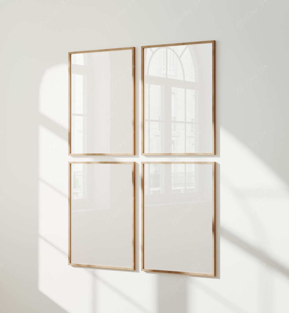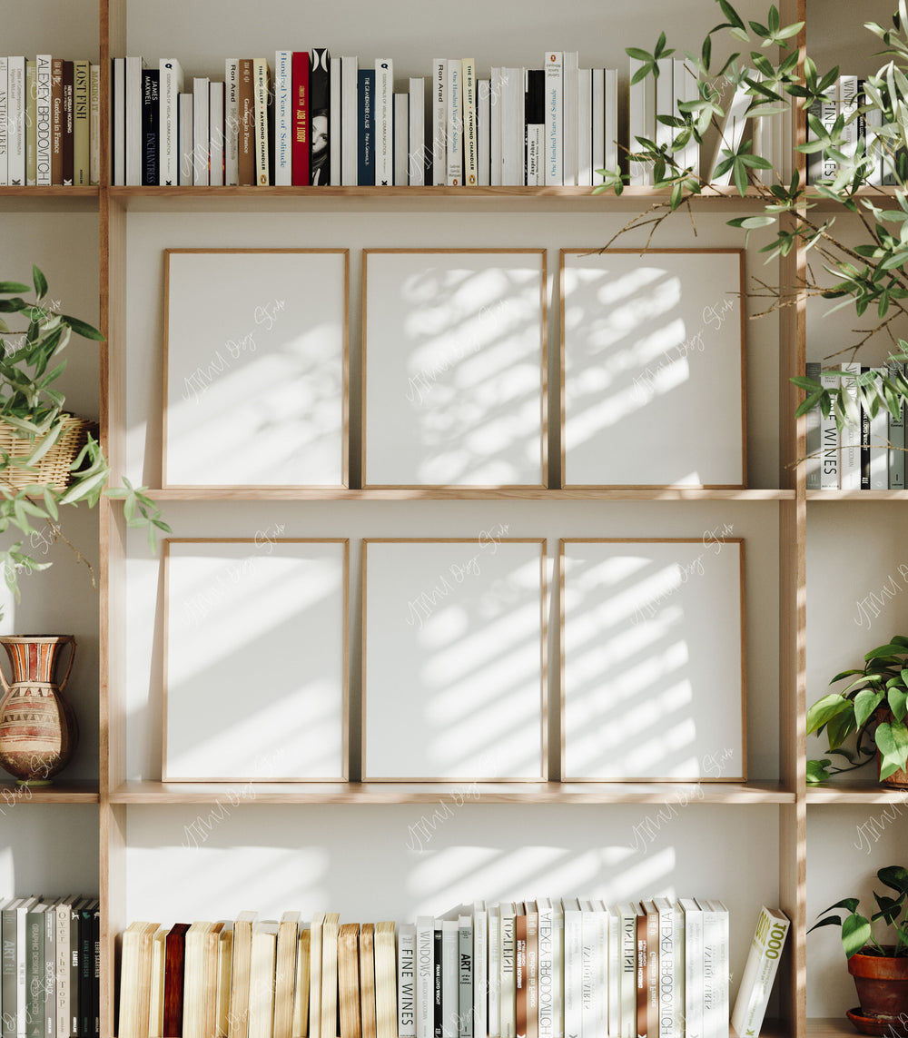 Set of 6 Frame Mockups with Reflection,3x4 Wood Frame Mock-Up,Wall Art Mockup