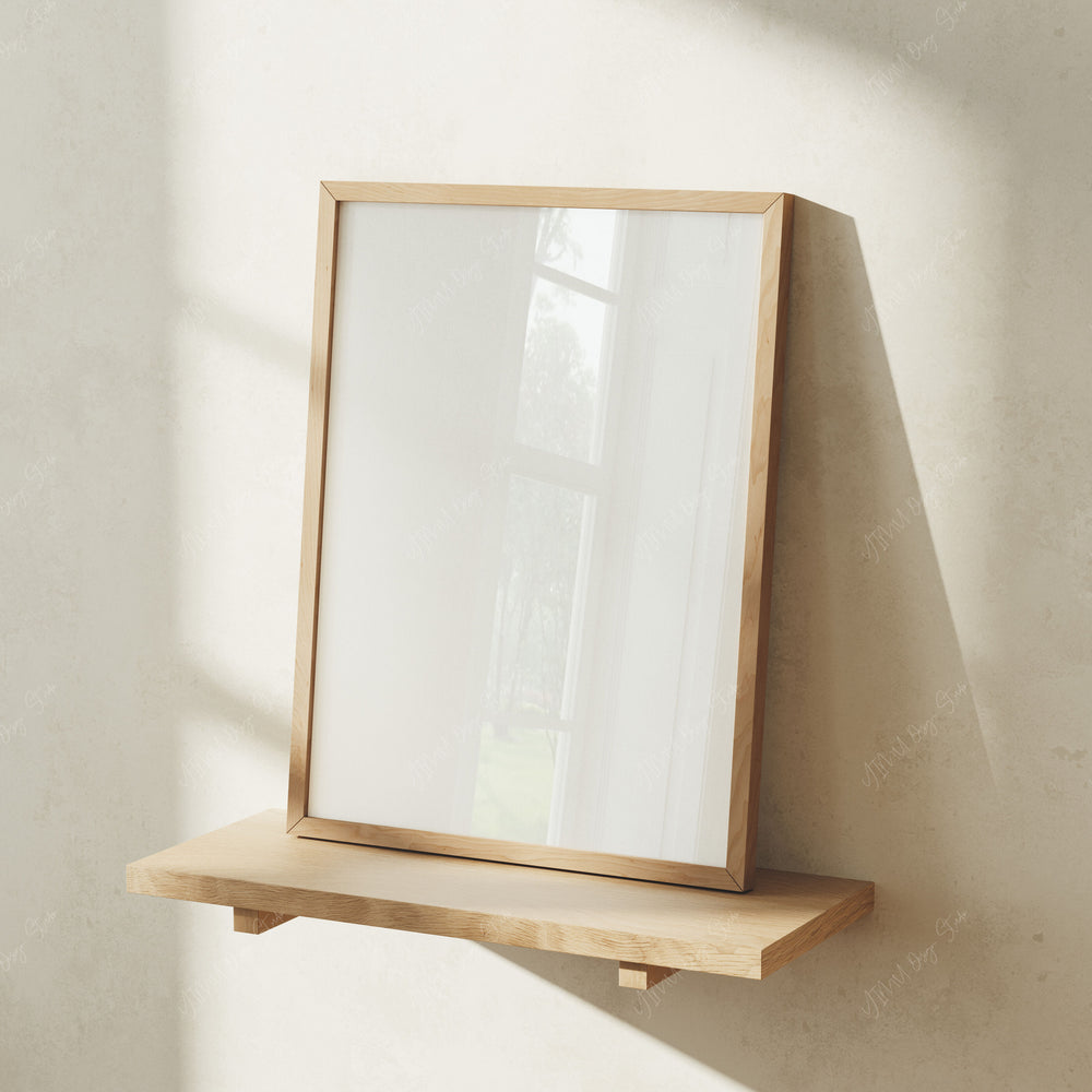 Wood Frame Mockup in home Interior,3x4 Ratio Frame Mock-Up with Reflection