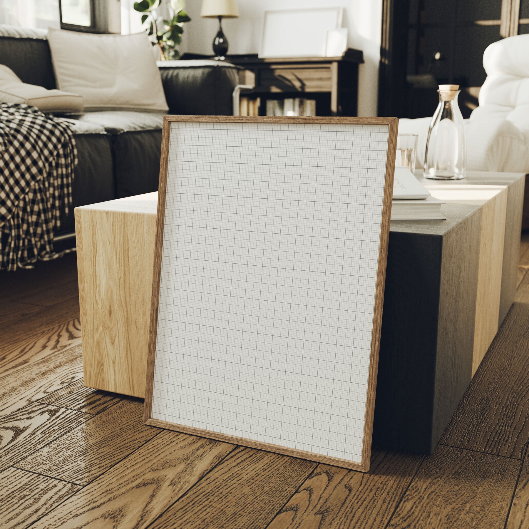 Wood Frame Mockup in Living Room,3x4 Ratio Frame Mock-Up,Picture Frame Mockup,Poster Mockup