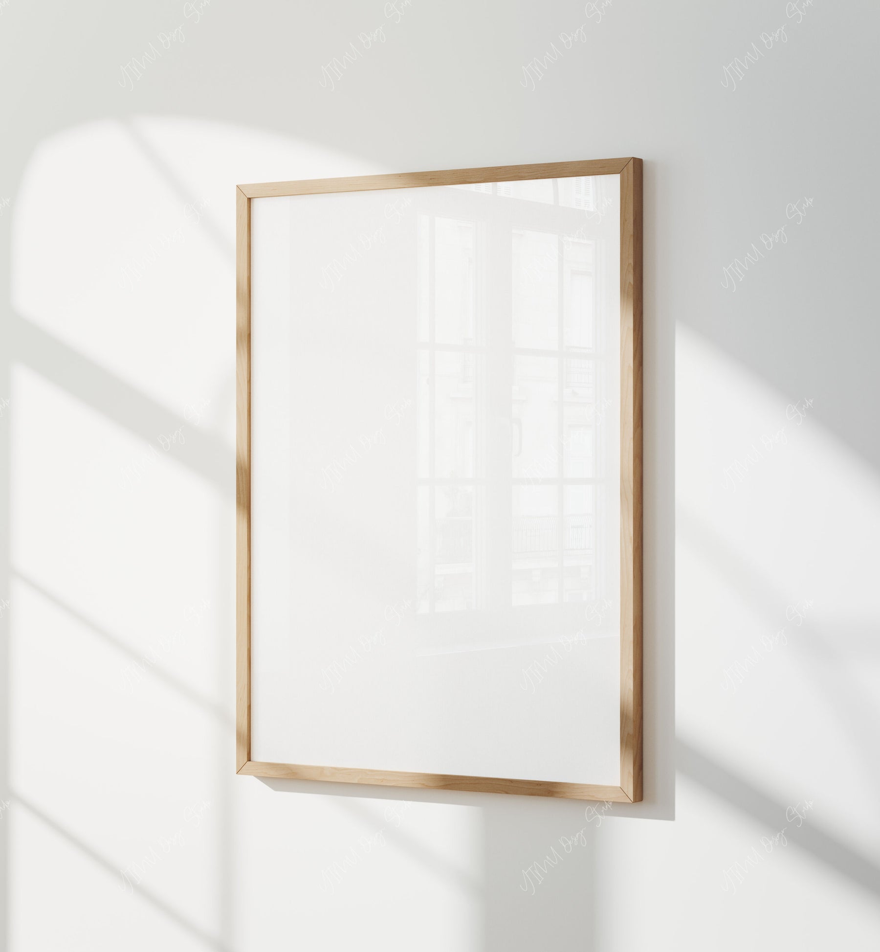 Wood Frame Mockup with Reflection,3x4 Ratio Frame Mock-Up,Blank Background,Picture Frame Mockup,Wall Art Mockup