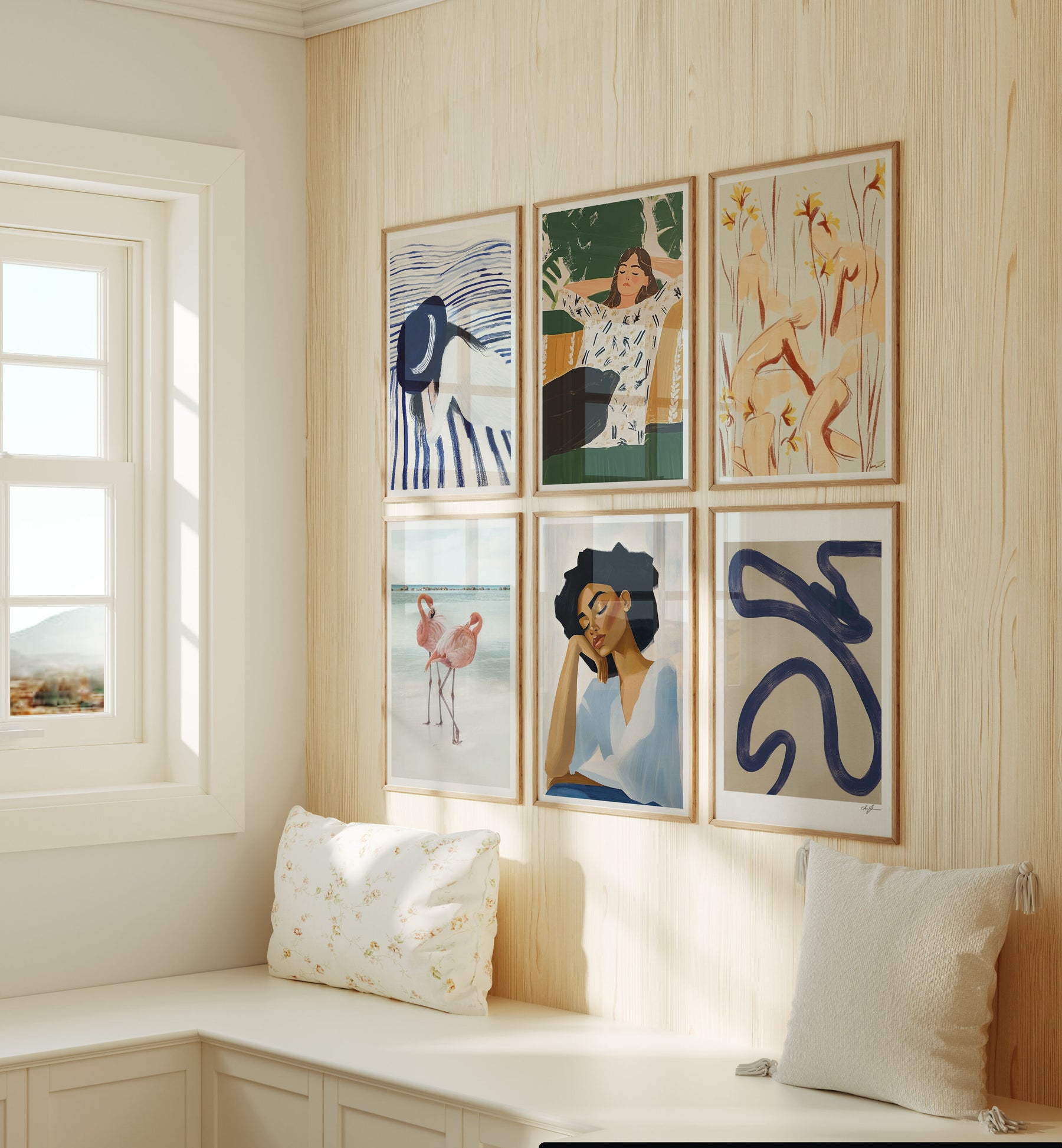 4.Aesthetic, neutral settings enhanced by soft light for standout artwork.